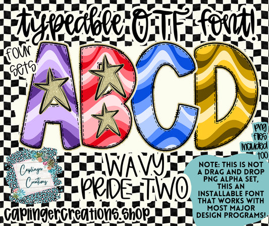 Wavy Pride SET OF 8 - spirit wear colors - TYPEABLE OTF FONT + PNGS - Digital download