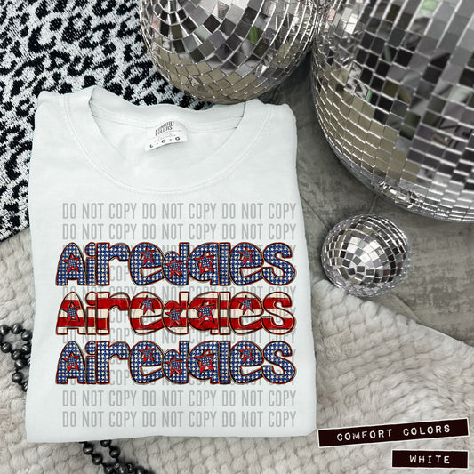 American Flag Red and Blue Faux Embroidery - ALPHA SET A-Z - Digital download 300DPI PNG FILE
