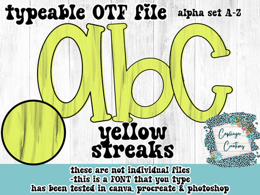 Brushstroke/Streak Matching Font Set - 5 ALPHA FONT A-Z - TYPEABLE FONT - Digital download 300DPI PNG FILE