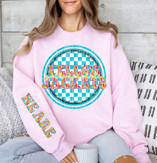 Blue Checkered Circle Brushstroke Mascot With Sleeve Dropdown + Custom Option Digital Download 300 DPI PNG
