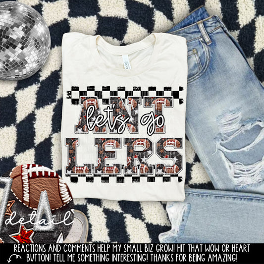 Let’s Go Football Faux Embroidery Checkered Mascots Dropdown With Custom Digital Download 300 DPI PNG