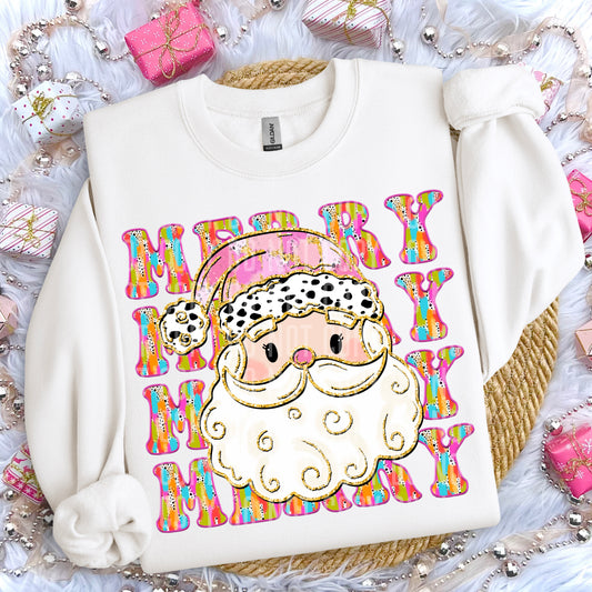 Merry Christmas Santa Faux Embroidery Digital download 300DPI PNG FILE